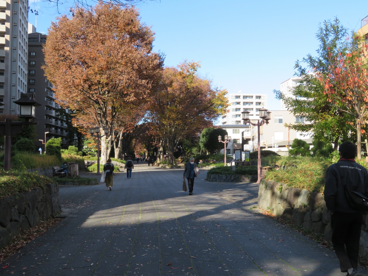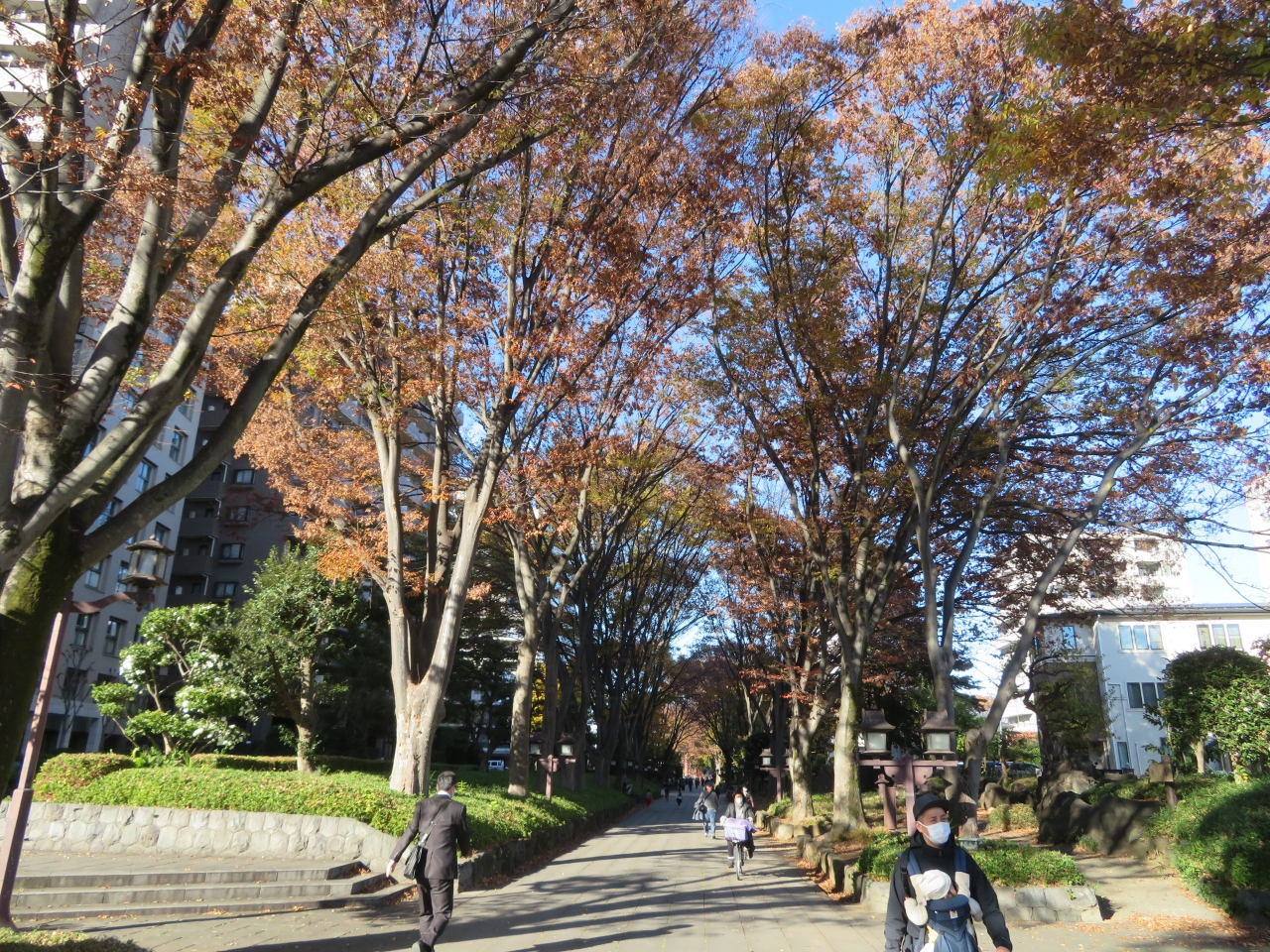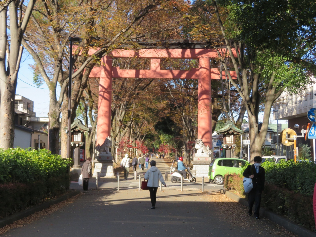 JR高崎線大宮駅下車、東口から歩いて15分位のところにある。氷川神社の参道は中山道から社に向かって南北に2キロ続いている。社もいいが、参道は両側にケヤキ並木が並んでいて、春から夏は緑のトンネルになる。秋は紅葉がきれい。歩行者専用道になっている区間もあり、のんびりと歩くことができる。途中に有名な団子屋さんがあり、一休みできる。