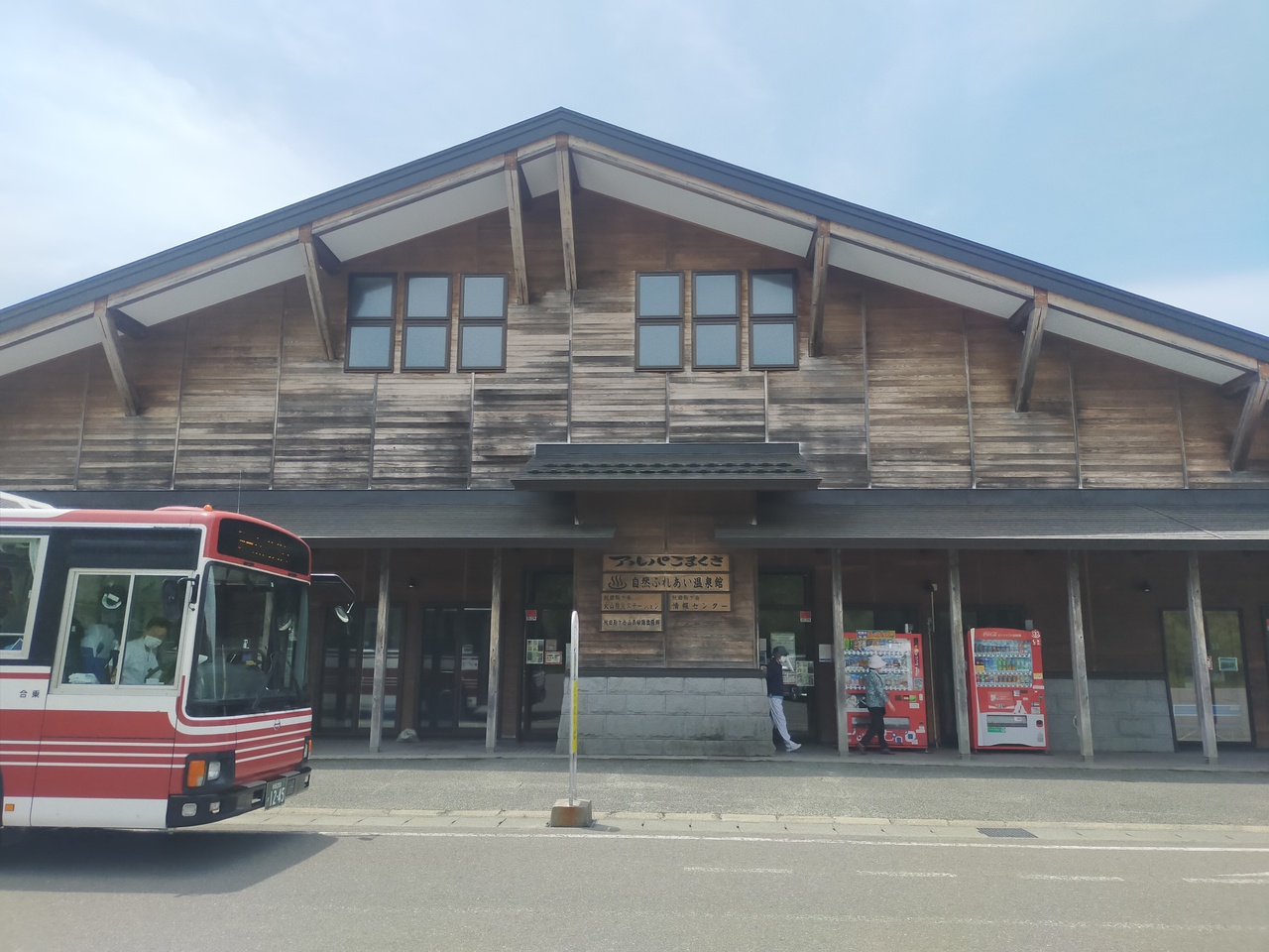 アルパこまくさって、聞いたことあるなと思ったら、秋田駒ヶ岳へのバスの始発点でした。マイカー規制がされるため、登山客はここに車を止めて、登山バスで向かいます。秋田駒ヶ岳のビジターンター要素もあるようで、植生や成り立ちが展示されていました。