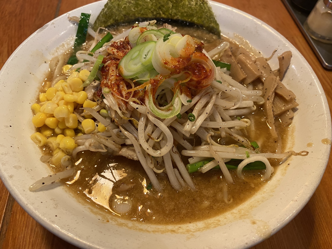 池袋駅東口界隈にあるラーメンのお店です。ラーメン激戦区ですがこのお店は価格が比較的お手頃。ラーメンもつけ麺も700円台から味わえます。この日は味噌豚骨ラーメンという響きに惹かれて注文。見た目通りのコッテリでちょっとハードでした笑