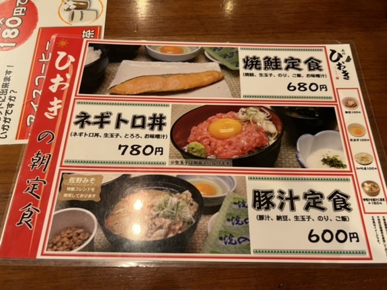 食べたのは豚汁定食600円!ご飯、豚汁に納豆、生卵のシンプルな内容です。ご飯の大盛はサービスです。
