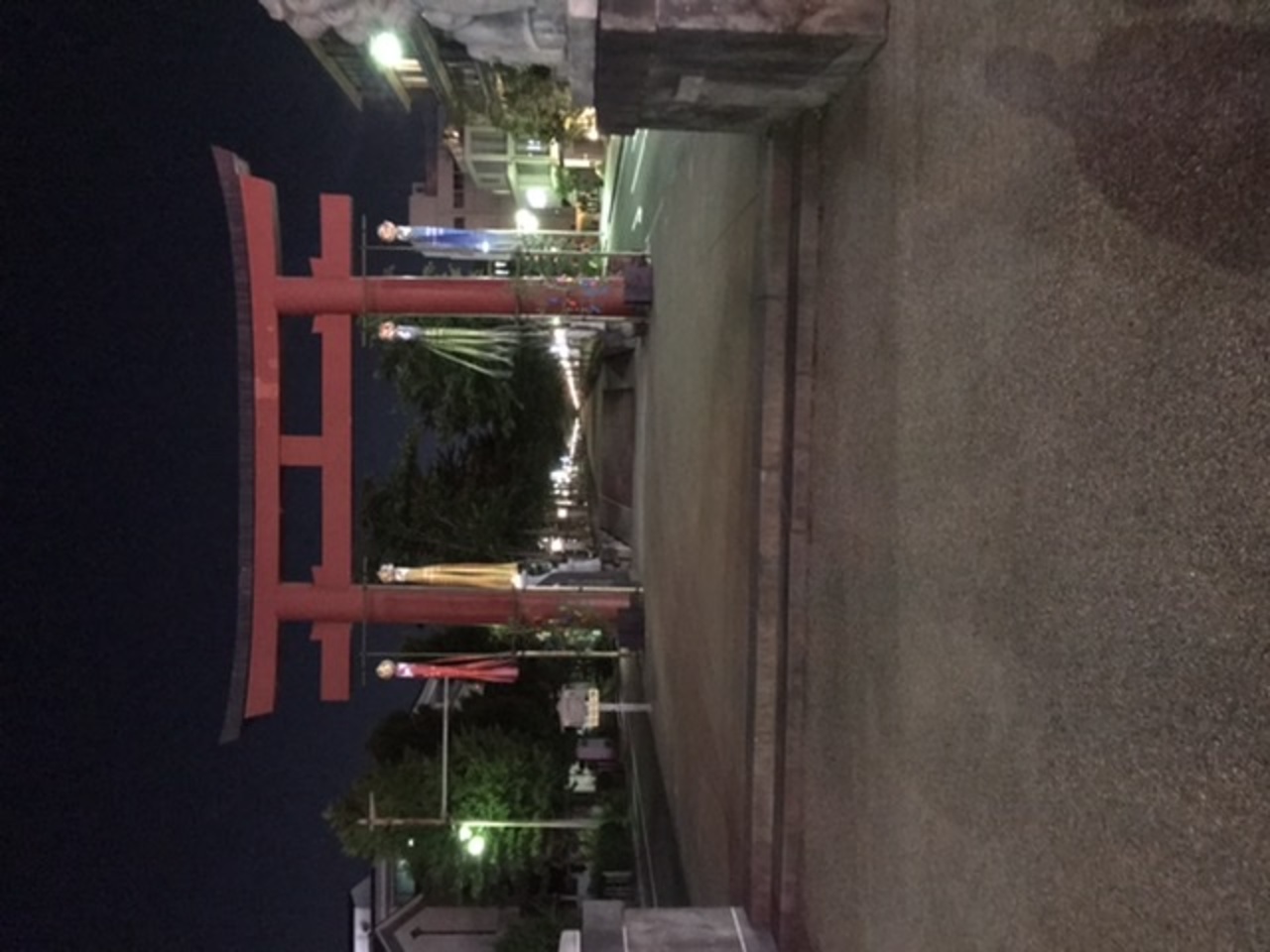 途中で二の鳥居があり、そこから源頼朝が北条政子の安産を願って作らせた段葛があり、その両側を車道が走っています。
