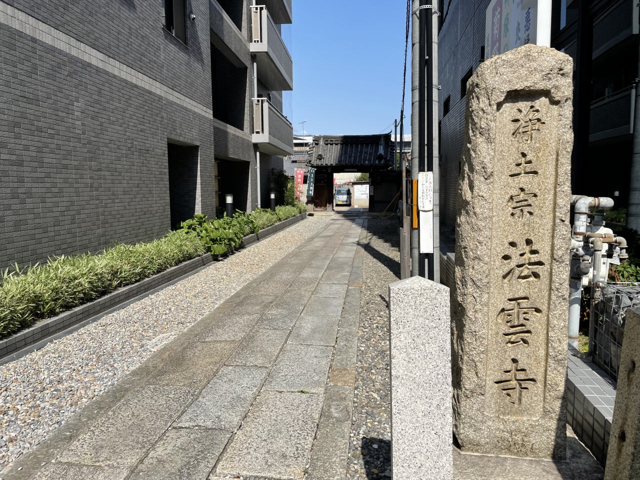 河原町二条交差点北東側にあります。浄土宗寺院で、正式名を清水山洗心院法雲寺といいます。入口が分かりにくく、看板がありますがビルに囲まれているので見落としてしまいそうでした。境内には本堂、奥に進むと良縁と縁切り祈願で有名な 菊野大明神があります。