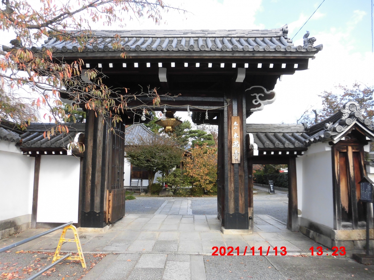 京都市観光で立ち寄りました。本満寺は、賀茂川に架かる葵橋から西に3分程の所にあった日蓮宗のお寺で、山号は広布山、塔頭が四院(一乗院、守玄院、実泉院、法泉院)あり、境内の枝垂れ桜が見事な枝ぶりだったので、春に再訪したいお寺でした。