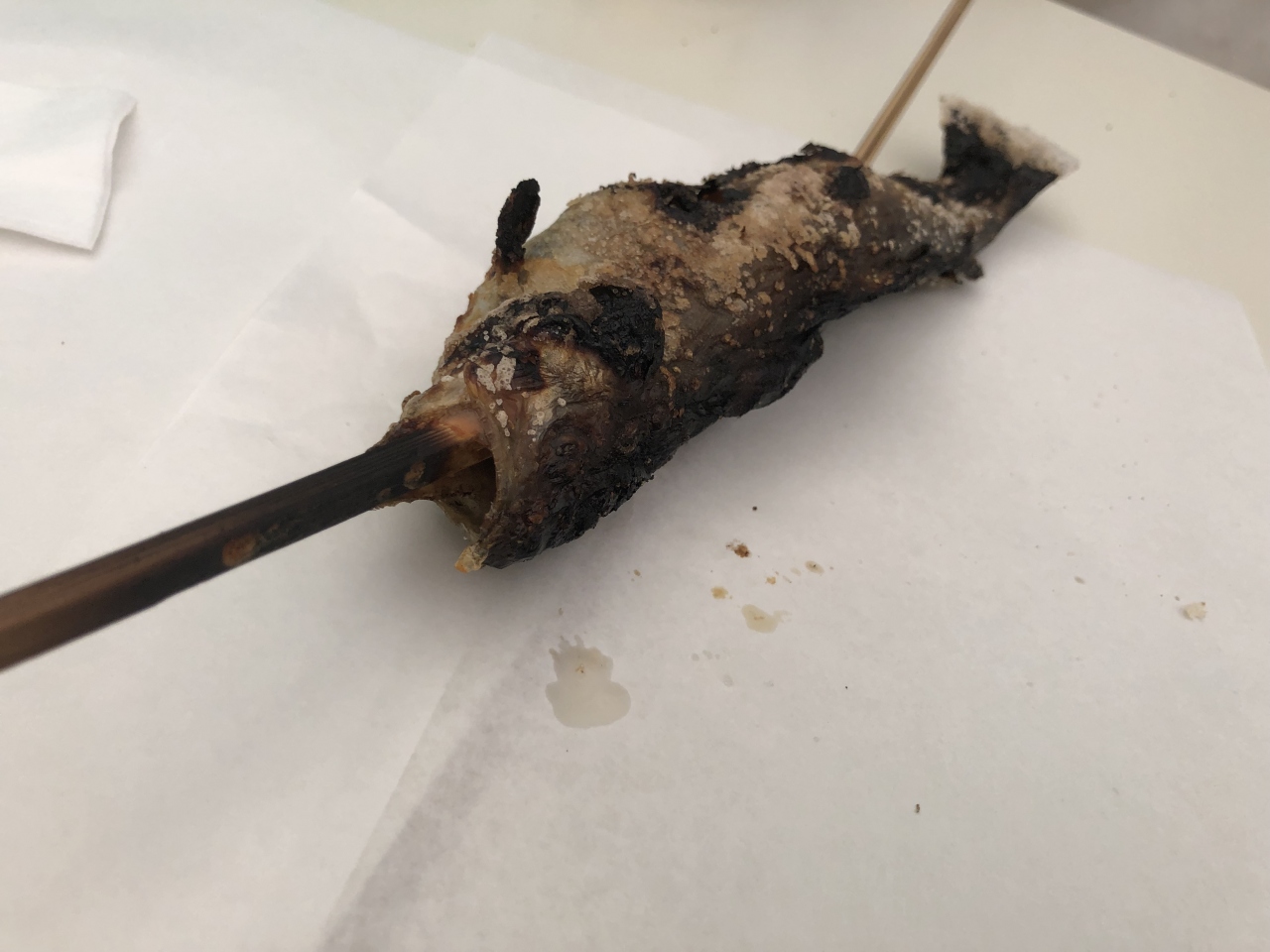 いくつかある店舗の中に、いわなの炭火焼きを出すお店があり、焼きたてを購入して頂きました。