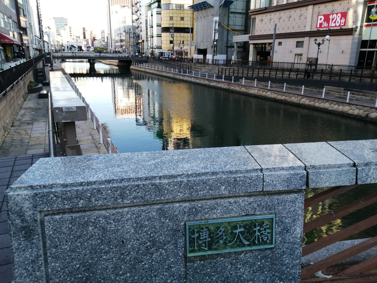 博多川に架かる橋で、それほど目立つ外観でもないので、気づいたら渡っていたという感じでした。