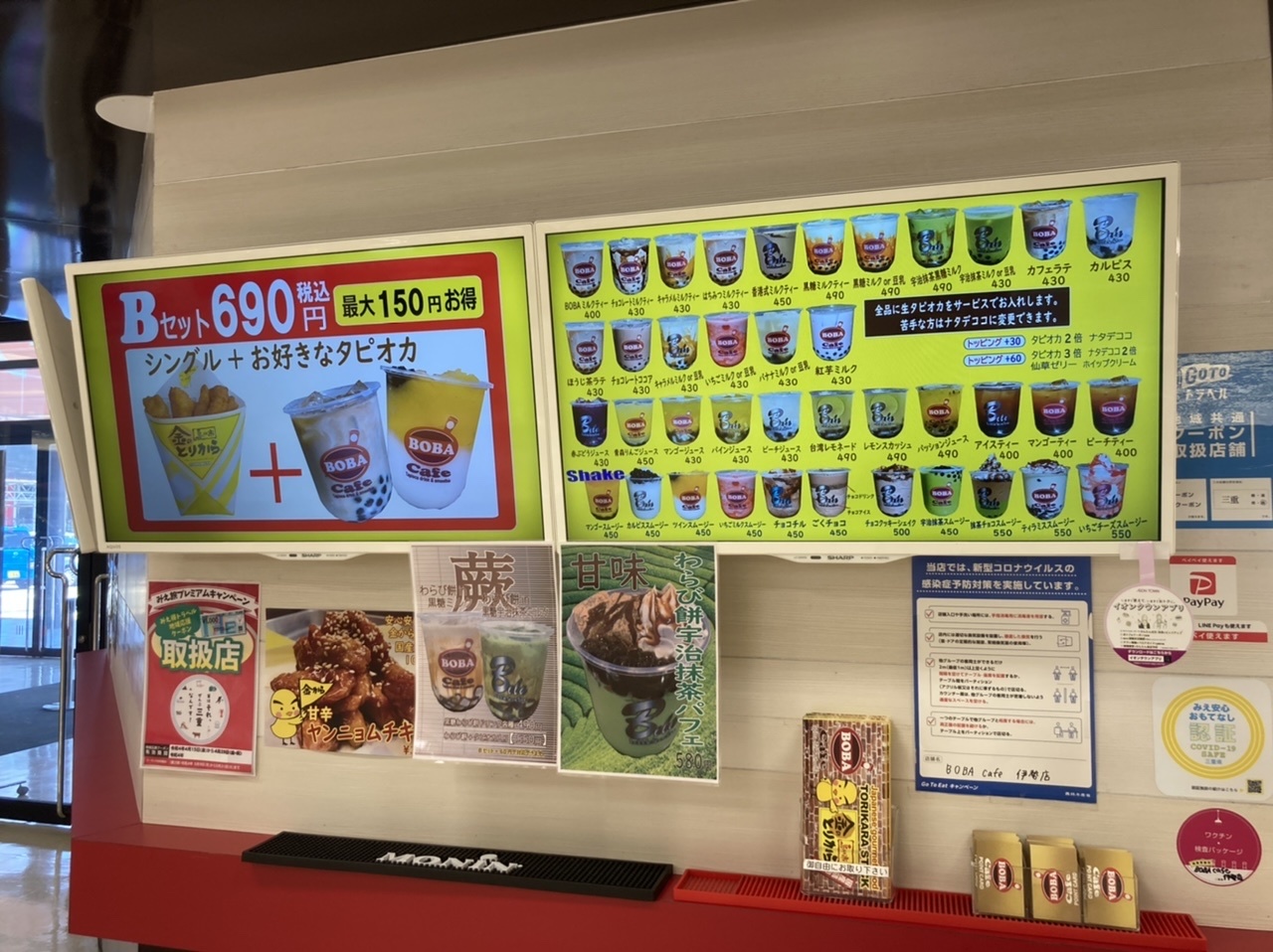 イオンタウンララパークの1階にある金のとりからさん。平日の昼前に訪れたら、とても空いていました。ドリンクメニューがすごく充実しています。タピオカドリンクの他にスムージーやわらび餅のドリンクもあり選ぶのに迷います。