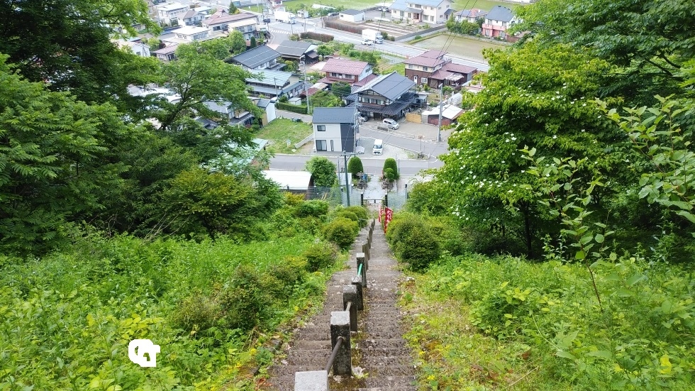 社殿からは街並みを見渡すことができ、見晴らしはよかった。階段の傾斜は急なので上り下りは慎重に。