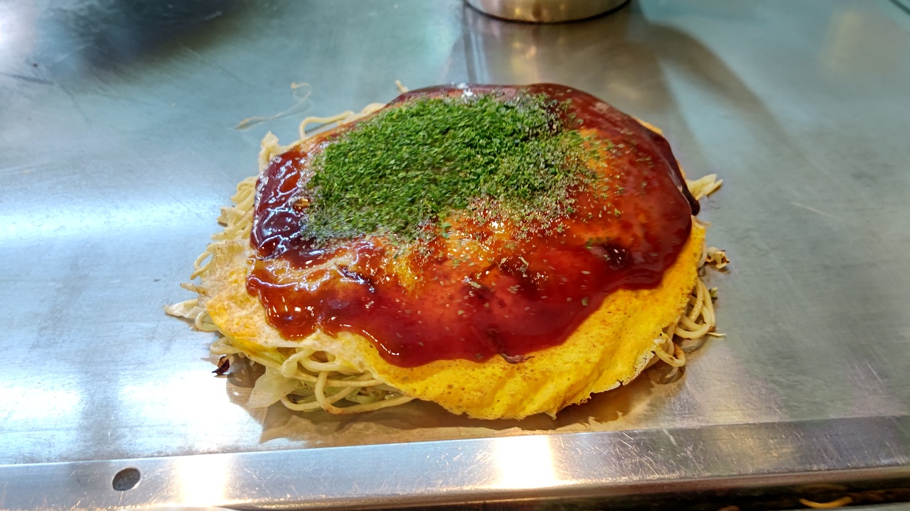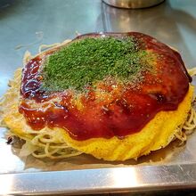 広島に仕事で久々に戻り懐かしい味を味わった。太麺が特徴で昔から変わってないそばの入れ方。ヘラでお好み焼きを切ると昔から変わらない作り方がよくわかる。懐かしい味を堪能した。