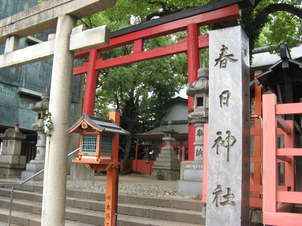 創建は平安時代半ば、御祭神として御祭神は武甕槌命、経津主命、天児屋根命、比賣神をお祀りしています。社殿は春日神社の総本社である奈良の春日大社を模したような朱色が美しく、釣燈籠も風情があります。社殿の前には狛犬ならぬ“狛鹿”が座っていて春日大社との繋がりを感じました。