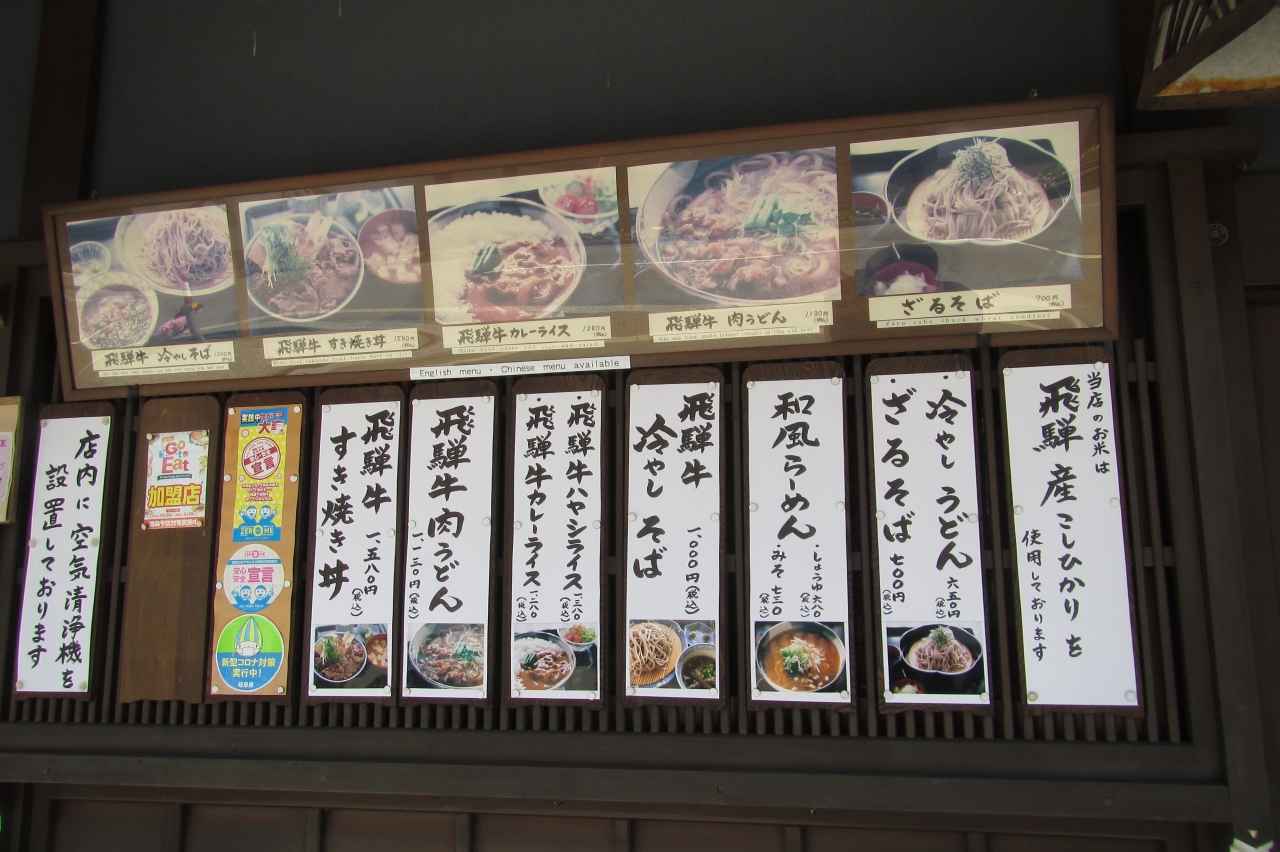 飛騨牛が入った冷やしそば、ハヤシライス、カレーライス、肉うどん、すき焼き丼などがありました