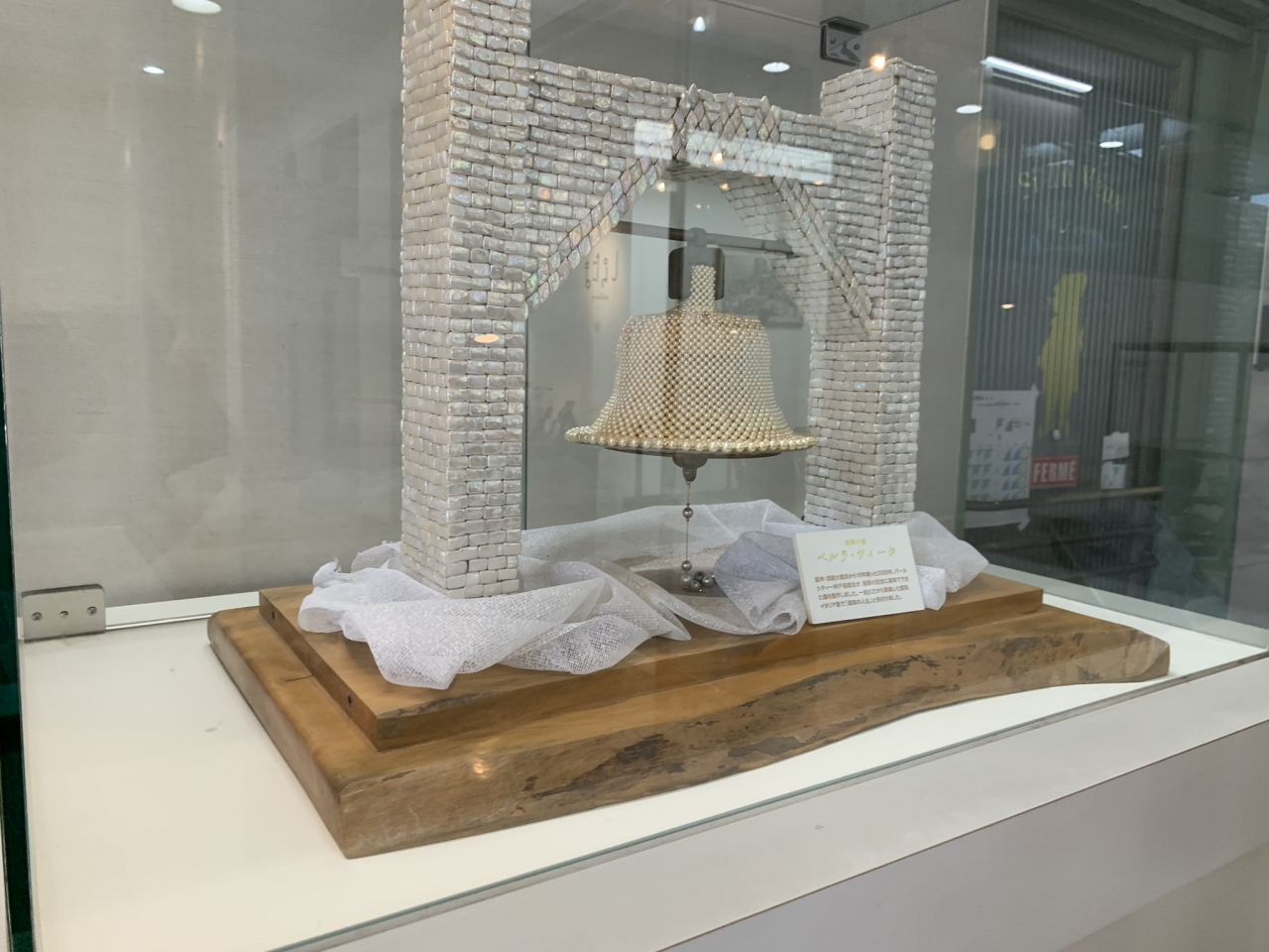一万粒のパールを使い、3か月かけて製作されたパールのツリーや、復興の記念として造られたパールの鐘、「真珠の人生」という意味のパール・ヴィータなど、美しいパールの作品も見学できます。
