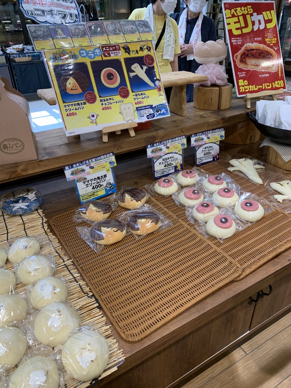 休憩のついでにこちらに入っているパン屋さん「森のパン」を利用しました。ちょうとフェアをやっている最中で鬼太郎のパンが販売されていました。中のクリーム部分にブランデーを使用しているので子供にはあまりおすすめしません。普通に美味しかったです。