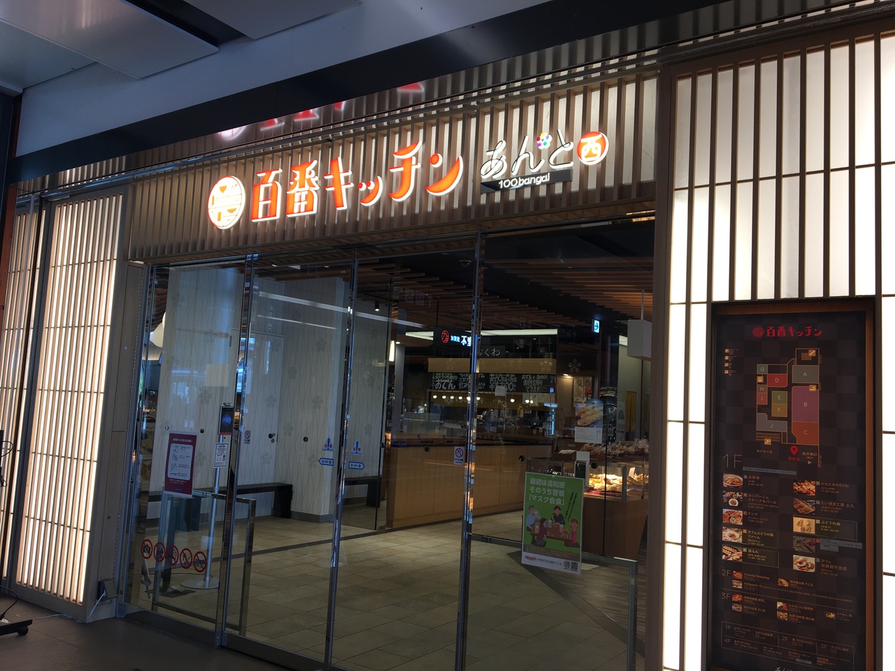 金沢駅構内にある商業施設「あんと西」内の食のエリアです。金沢名物のおでんや加賀麩で有名な不室屋のカフェ、お寿司屋さんなどが入っています。金沢に来たからには、お寿司が食べたいと思い検索したところ、百番キッチンの2階にある回転すし「廻る富山湾すし玉」がヒットしたので行ってきました。金沢駅内という便利な立地が魅力です。