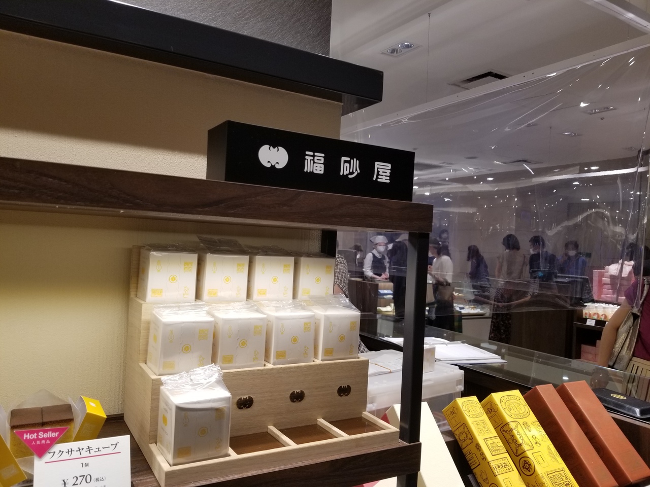カステラで有名な店舗だ。値段はそれなりにするが美味しい。通常サイズに加えてキューブサイズなどもある。