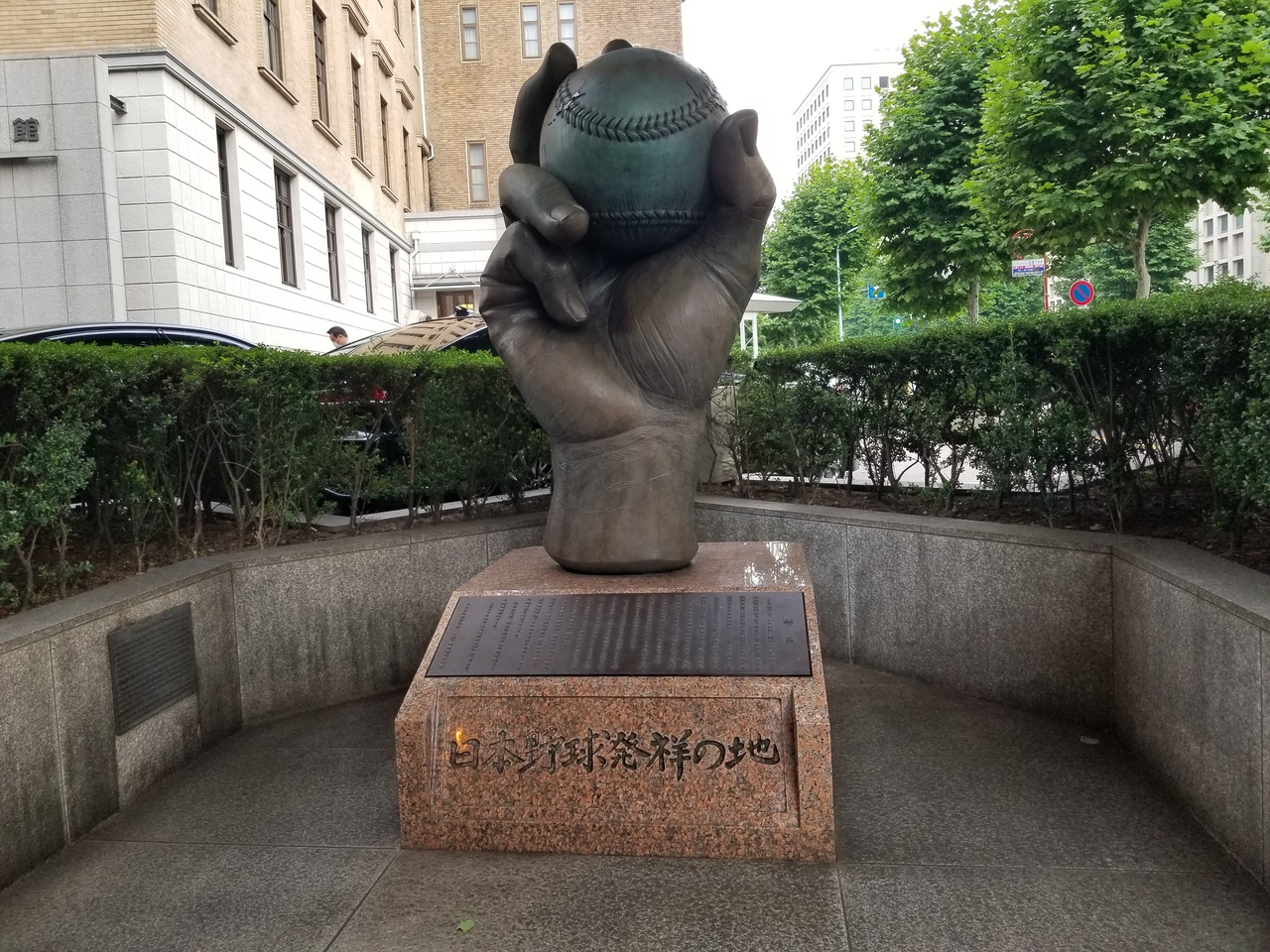 日本に野球を伝えてくれたホーレス・ウィルソン氏の野球殿堂入りを記念して立てられた記念碑だ。