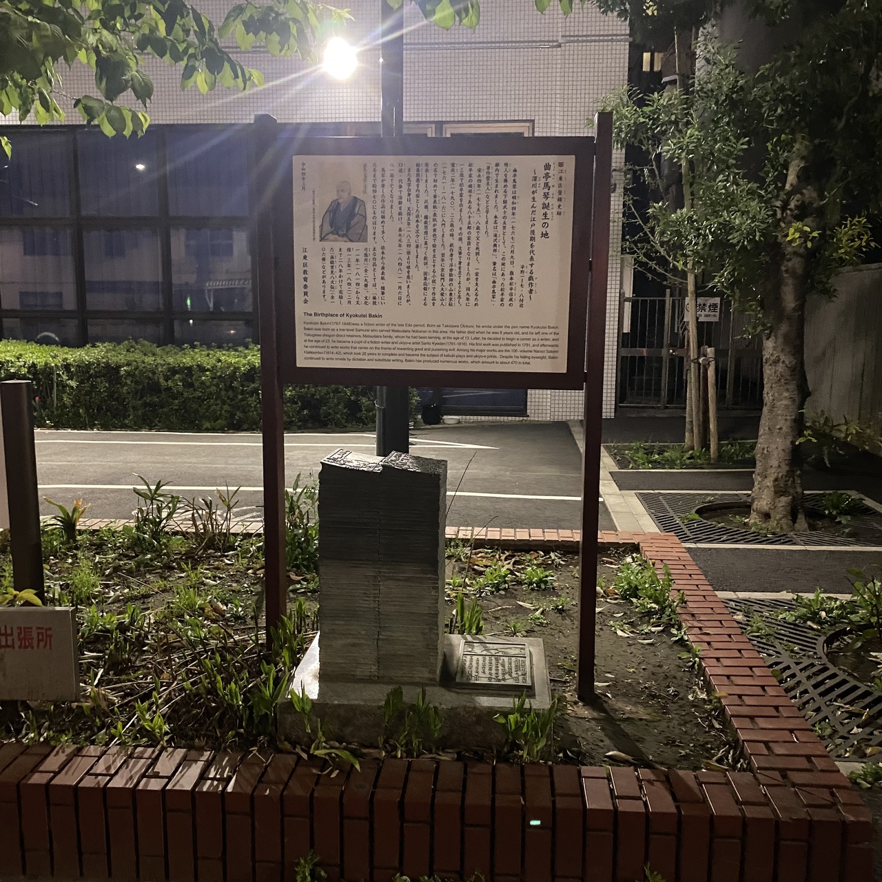 散策ついでに立ち寄りました。南総里見八犬伝の著者ということで説明書きの看板がありましたが、初めて知った方ですので勉強胃なりました。スポットとして登録があったので、立ち寄って見て写真をとった程度の場所となります。