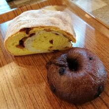 愛知県内に4店舗を展開するパン屋です。この幸田店が本店となります。メルヘンチックでかわいらしい外観で中はかなりゆったり目、居心地のよさそうなカフェスペースもあります。凝ったパンが多く、どれもおいしそう。悩みに悩み、「DEKA 爽やかオレンジ1/8」(税込320円)と「チョコベーグル」(230円)を購入。爽やかオレンジにはいよかんとゆずのピールとクランベリーが入っておりとってもおいしかったです。