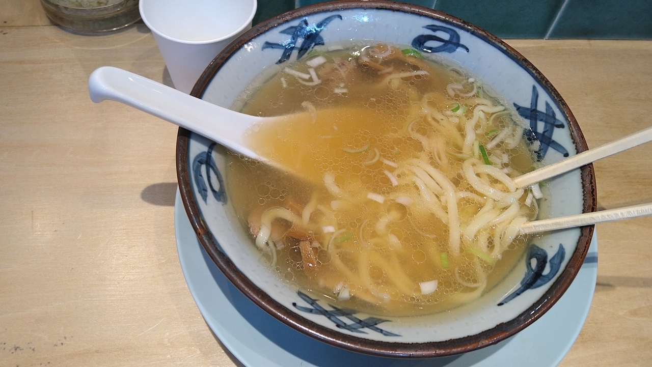 新橋駅汐留口の駅前、新橋駅前ビル1号館 1階にあるカウンター席のみの小さなラーメン屋さんです。ランチで中華そば890円をいただきました。具はチャーシューsyy枚、海苔1枚、メンマ、ネギで、モチっとした平打ち太麺と透き通った動物系と煮干がミックスしたスープの一品です。スープには脂分が多いもののさっぱりとした味わい。スープの美味しい中華そばで満足しました。