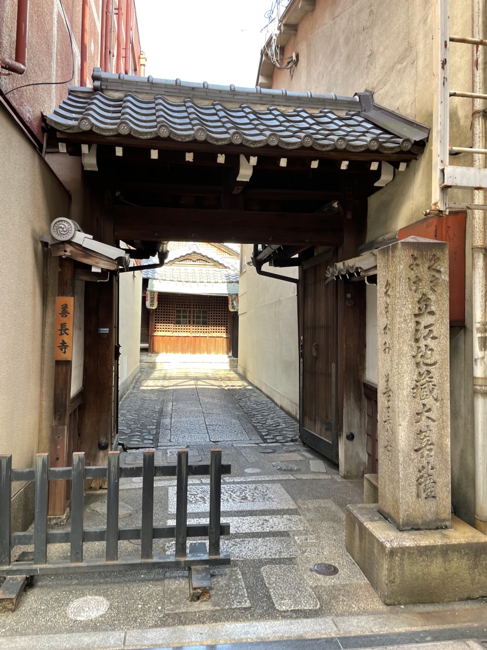 新京極商店街にあり、「くさがみさん」と呼ばれ親しまれています。16世紀初めに創建されたと伝わる浄土宗の寺院です1591年に豊臣秀吉の命によって現在地に移され、その後徳川家康が上洛時の定宿として使用したそうです。山門をくぐって入ると、正面の地蔵堂に秘仏である立江地蔵尊が安置されています。