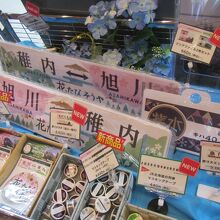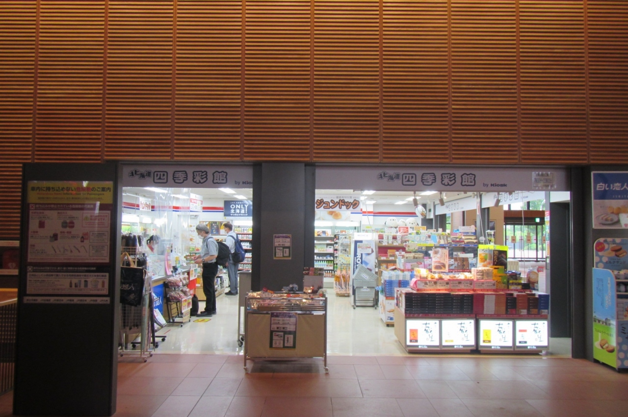 旭川のお土産は、東改札向かいにある観光物産情報センター(お土産販売コーナーは9時から19時まで)の方が種類豊富ですが、四季彩館の方は改札横にあるのが便利で、朝早い時間なども開いているため、代表的なもので良ければこちらのお店の方が使いやすいです。