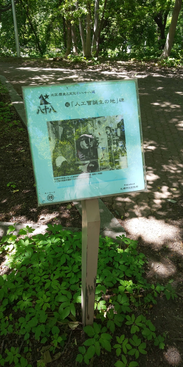 昭和11年頃にこのあたりにあった研究施設で人工的に雪をつくることに成功しました。