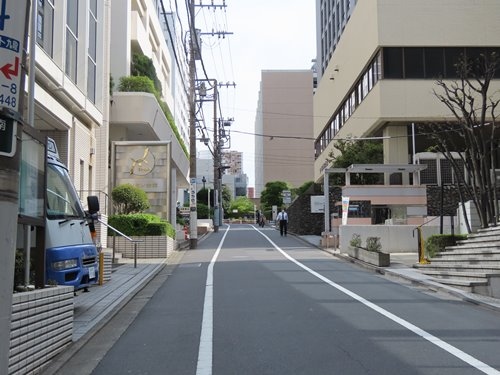 一口坂を上りきって靖国通りへ出ました。市ヶ谷駅へと向かわず、続いての目標設定は四谷見附です。バイクシェアを利用しての散策なのでルート選択は自在です。市ヶ谷駅のすぐ手前で靖国通りを左(南南東)へ向かって上るとこれが帯坂です。上りきると二七通りに突き当たります。坂名の由来は「番町皿屋敷」のヒロインお菊が帯を引きずりながら逃げたという言い伝え、からだそうです。