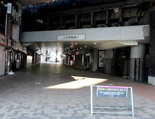神田駅付近は通りが線路に対して直交しておらず、慣れてないと散策していても方向感覚がすっかり狂ってしまいます。一般道を越えて渡っていくのが架道橋。その架道橋が高架のままつながっている構造物が高架橋という基本知識があやふやなまま、神田駅西口付近で最初に出会ったのがこの上白壁架道橋でした。歩行者専用道路が線路の下をくぐっていて、ほかの架道橋に比べて通りやすい印象を受けました。昭和の時代からガード下の活用は珍しいことではありませんが、高架の構造としてはなかなか複雑で理解しづらくなっていますね。