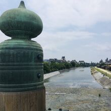 東海道五拾三次の西の起点にあるのが京都三条大橋です。鴨川に架かる風情ある橋で、京都では嵐山の渡月橋、五条大橋と共に人気のある橋の一つです。橋の安全を祈願するために欄干に設けられた玉ねぎ形の大きな「擬宝珠」は豊臣時代の建造時の初代のものらしいです。ここから眺める夕暮れの鴨川の流れが京都らしく、私のお気に入りの風景です。