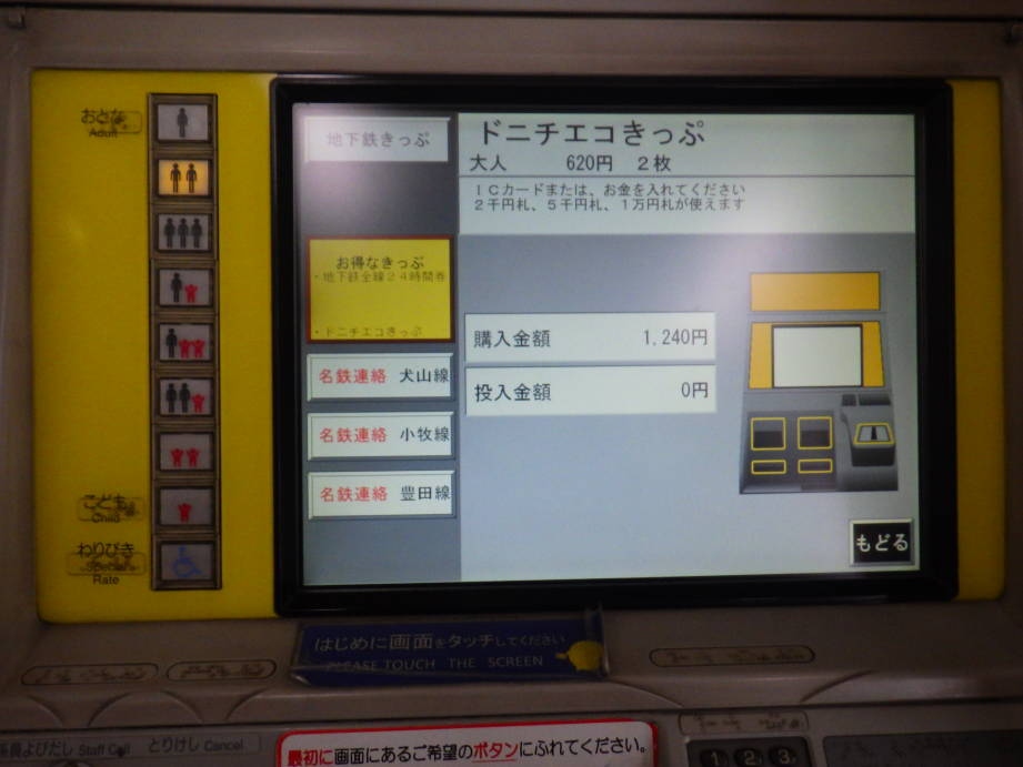 栄駅から「名古屋市営地下鉄」で東山動物園を目指すことにしました。「ドニチエコきっぷ」620円を購入しました。名古屋市交通局のバス・地下鉄全線に一日乗れ、様々な施設で割引もきくのでとてもお得だと思いました。