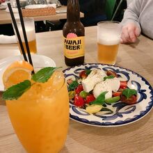 あわぢビール(ピルスナー)で乾杯して、吉田牧場のモッツァレラと大森さんのトマトのカプレーゼを一緒に注文してつまみながら時間を過ごしました。 自家製レモネードも美味しかった! マルゲリータピザもめっちゃ本格的で美味しかったし、パスタも2種類注文して、3人でシェアして頂きました。 本格的なピザ窯が、テーブル席から見えて、ピザ職人のテキパキした動きを見てるだけで楽しかったです!