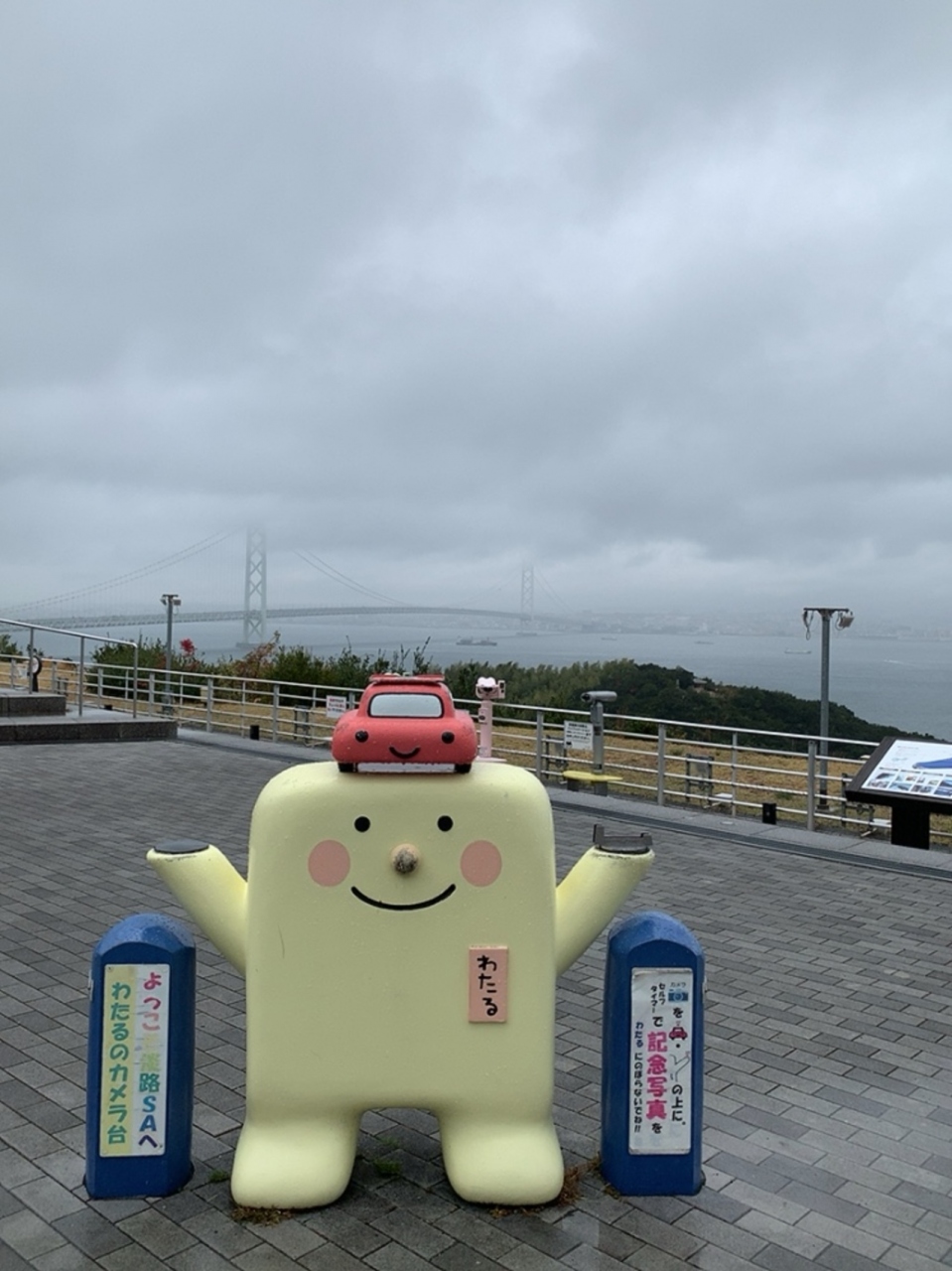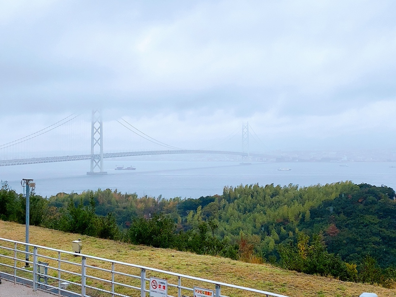 私たちが立ち寄ったのはあいにくのお天気の日で、明石海峡大橋は霧の向こうでしたが…。