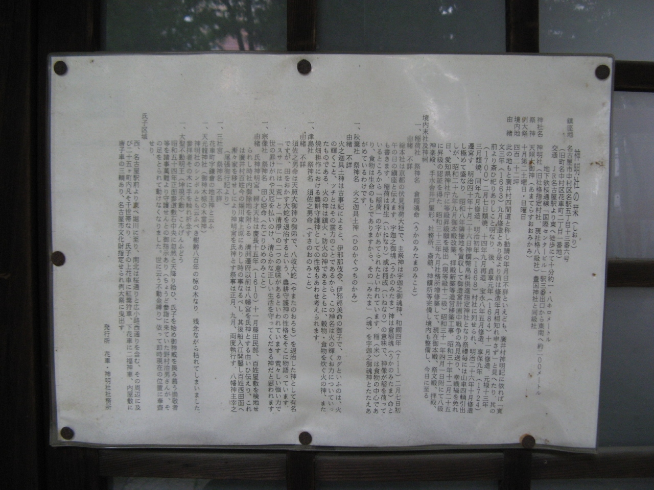 現地にあった由緒書き(添付写真を参照ください)によると、天照大御神をご祭神としてお祀りしており、寛文三年(1663年)に修造された記録があるがそれより以前は不明で、勧請の年月日は不詳とのこと。由緒は判りませんが、参道入り口の鳥居の横に乃木大将の石像があります。境内は広くはありませんが末社や木々も多く、静かで街中のパワースポットという感じでした。