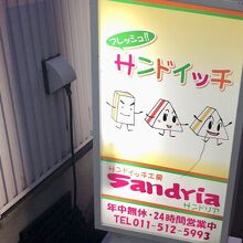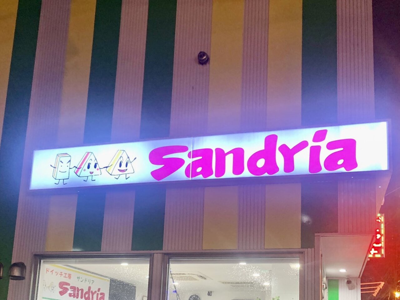 会社の地元に住むスタッフから教えてもらってから、サンドイッチ工房サンドリアに、通うようになりました。会社で残業の時など、夜食がわりに、よく買いに行きます。24時間営業で夜遅くなっても、お客がまんべんなくやって来ます。夜でも写真のような品揃えで、順次補充されているのが良いです。