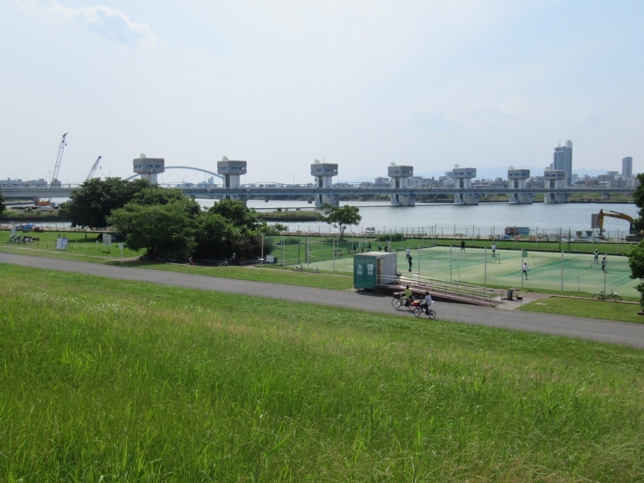 阪急千里線の電車から淀川鉄橋の上流側に良く見えます。