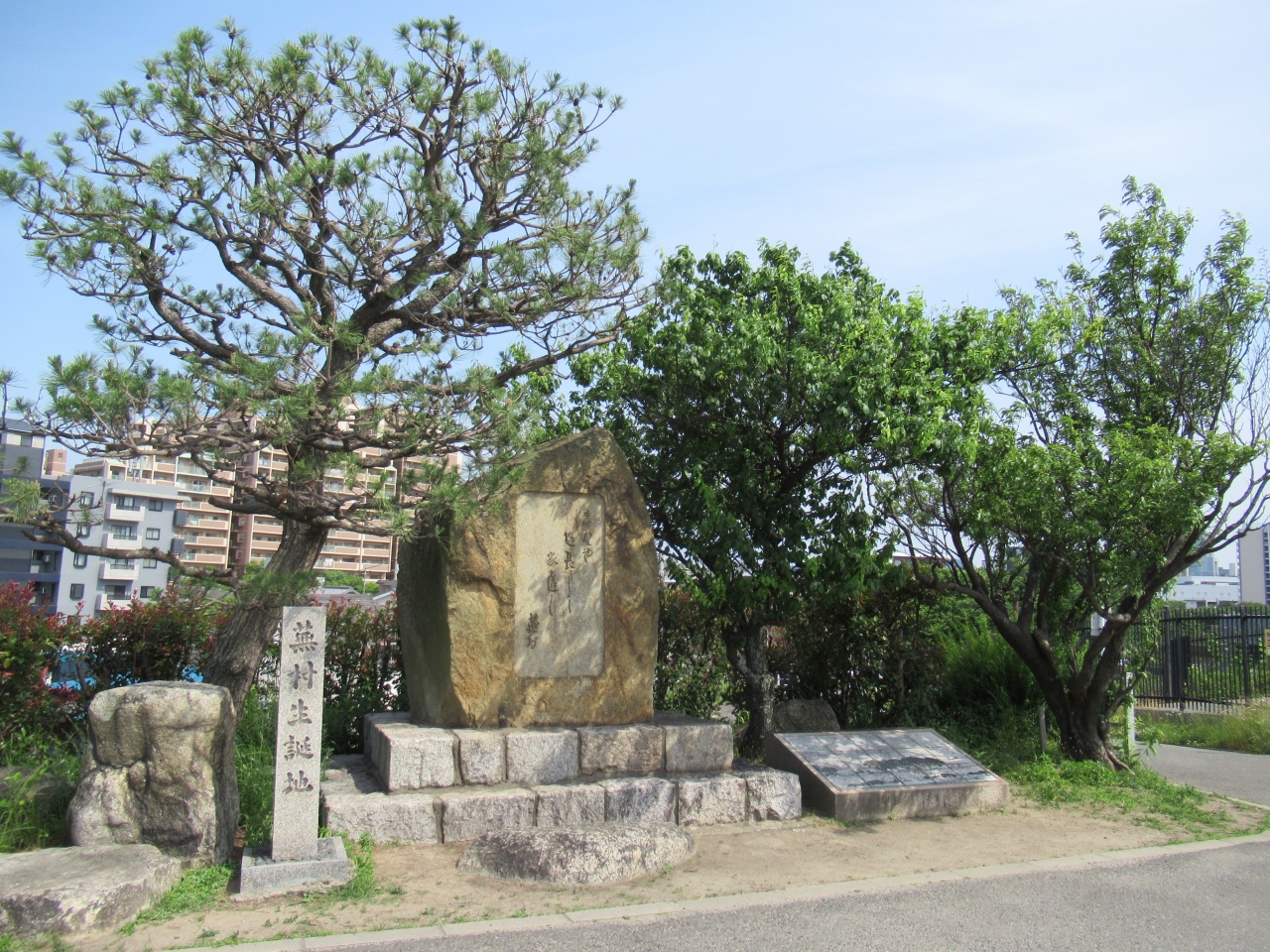 大阪の毛馬閘門近くの淀川堤防上に、蕪村の句碑と生誕地の碑があります。