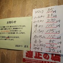 約1年ぶり、久々の訪問。タイミングが悪かったのかショーケースの中の揚げ物はちょろちょろ。目当てのハムカツは残り1個…。念のため尋ねてみると、「今揚がりました」と。よかったー。やっぱりここのハムカツのハムはぶ厚くておいしい!1枚税込85円、とてもお得だと思います。