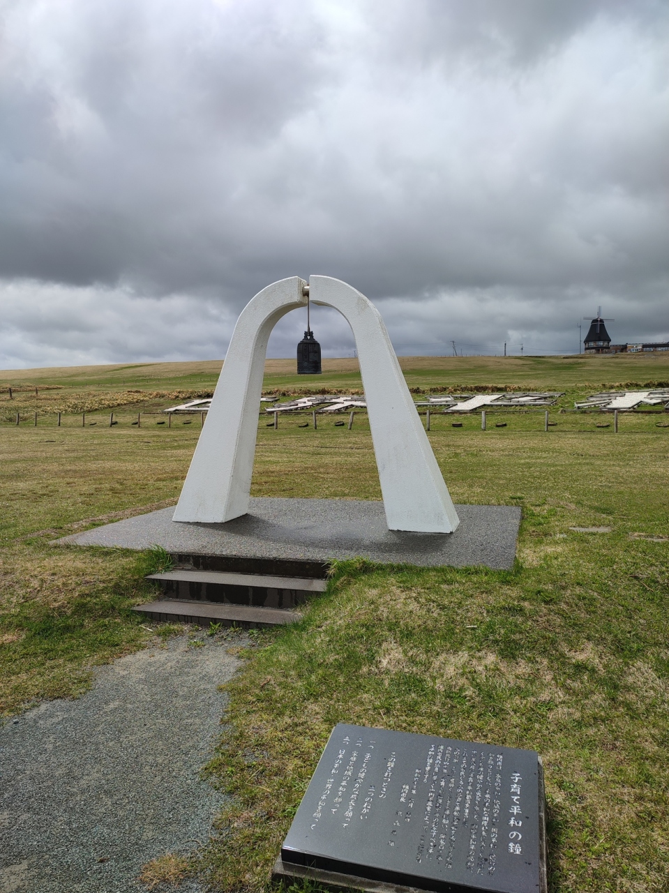 宗谷岬平和公園にはいくつかのモニュメントがありますが、そのうちの一つです。稚内市は平和都市宣言をしているそうで、家庭の平和や地域の平和などを願って建てられたモニュメントですが、似た感じのコンセプトのものが並んでいるのでインパクトは薄いです。