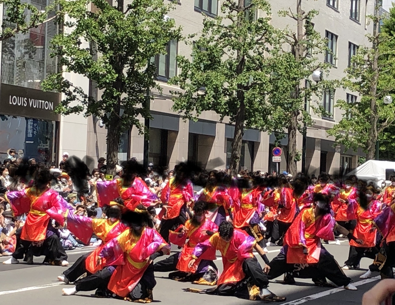 3年ぶりに開催されました。たまたま、道路が封鎖されていて、踊っていたので、片隅に佇んで、しばらく眺めていました。ちびっ子の団体もいました。が、若者たちが、次々に衣装を脱いでいく早着かえとか、切れのあるダンスとか、迫力がありました。