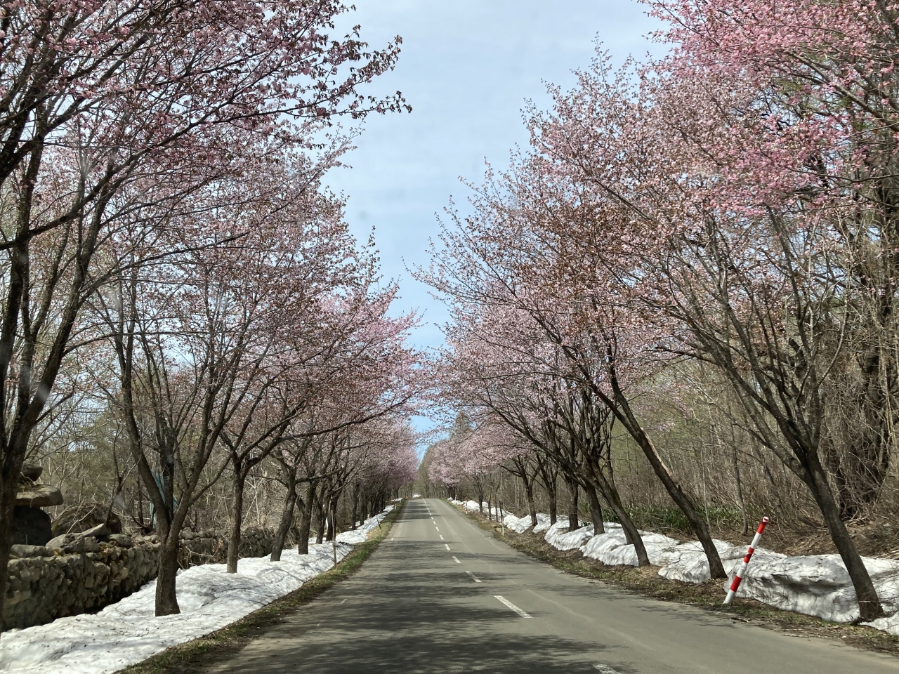 岩木山の麓を周回する道路を弘前から嶽温泉へ向かう途中に、総合公園の大きな看板がある。その標識を頼りに山裾の方へ下ると、広い敷地の公園が見えてくる。が、その公園へ向かう道沿いには縦横無尽に山桜が植えられており、お城の桜とはまた違った趣がある。ちょうど満開の頃にはまだ地面には雪が残り、「雪割桜」とはまさにこのことであると気づいた。