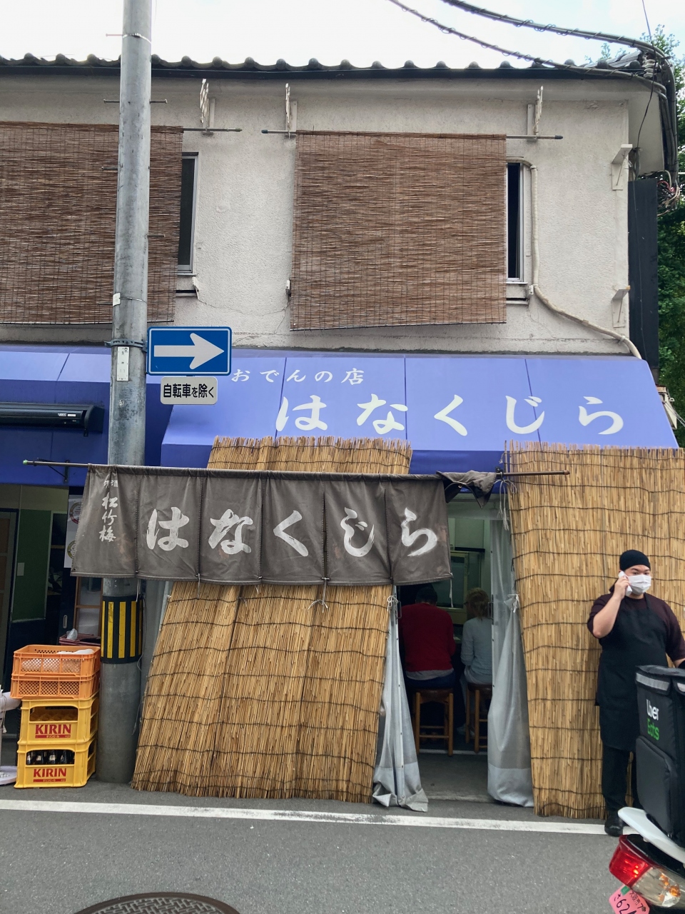 ABCホールで映画を見たあと、道路を渡って路地に入り込むや、何やら店の前に行列が。コロナもまだ開けきらず、ホールでは一つおきに席をあてがっているような時期に、である。そこを通り過ぎると支店と思しき店が、テントの下から中が覗き込めるようにしておいでおいでしている。誘われるがままに、一献傾けた。