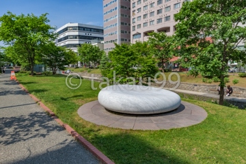 野外彫刻 「天秘」は創成川公園にあります。創成川公園にはいくつも彫刻アート作品が野外展示されています。二条市場のあとに立ち寄りました。遊歩道の芝生の中にありました。芸術はすばらしいですが、市民の血税が無駄に使われていないことを祈る。