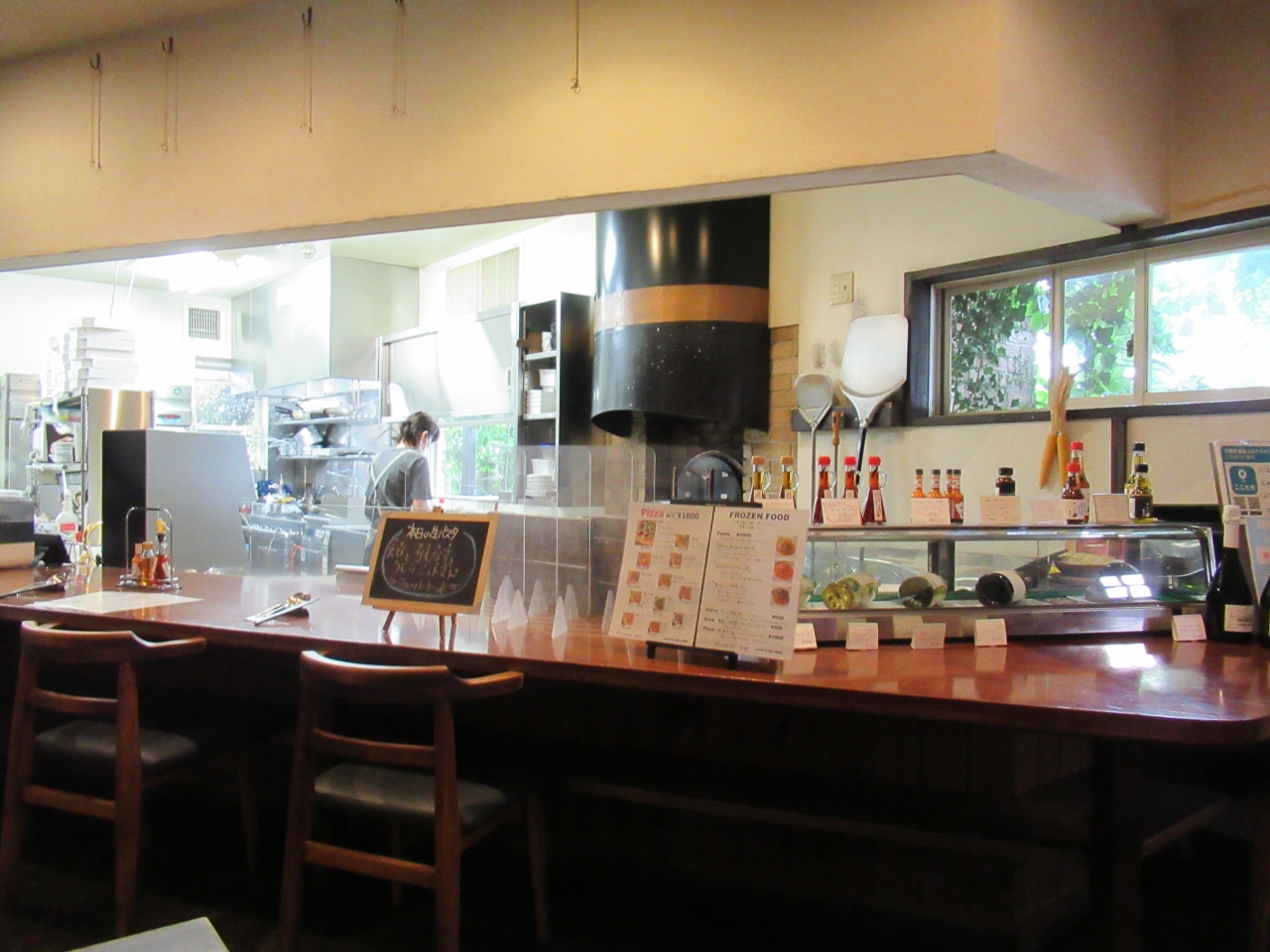 料理はパスタとピザをそれぞれ担当する方がいて、オープンキッチンになっているのでピザを1枚ずつピザ窯で焼いているのが見えました。