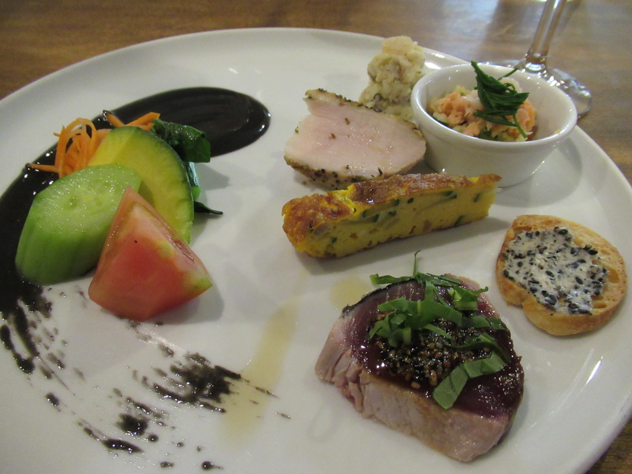ランチのコースは2種類で前菜盛り合わせ、スープ、お好みのピッツァまたはパスタ、ごま好きのデザート、コーヒーまたは紅茶で、高い方にはプラスで牛赤身肉のステーキが付きますが、我々は安い方にしました。