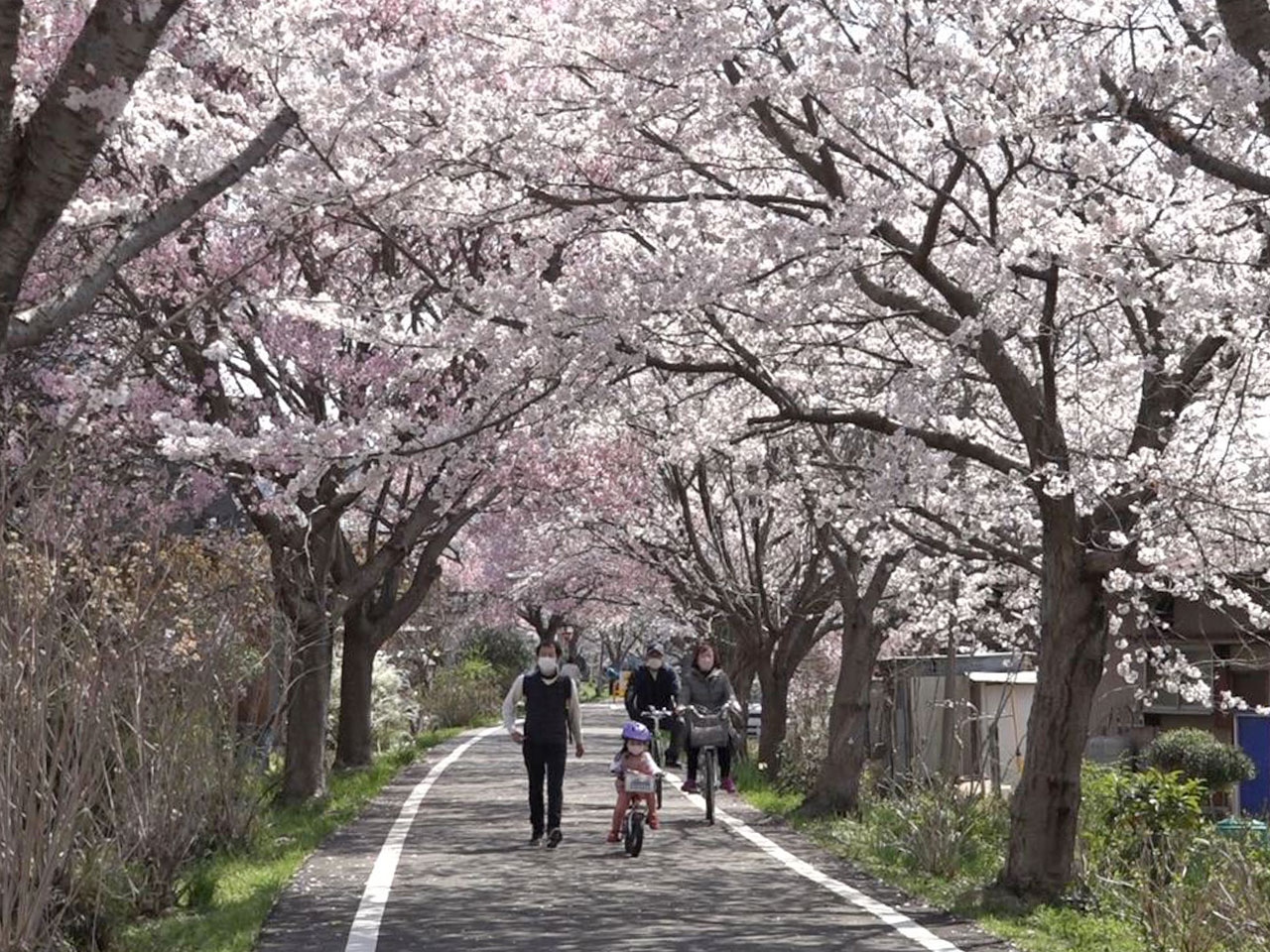 桜並木をサイクリング