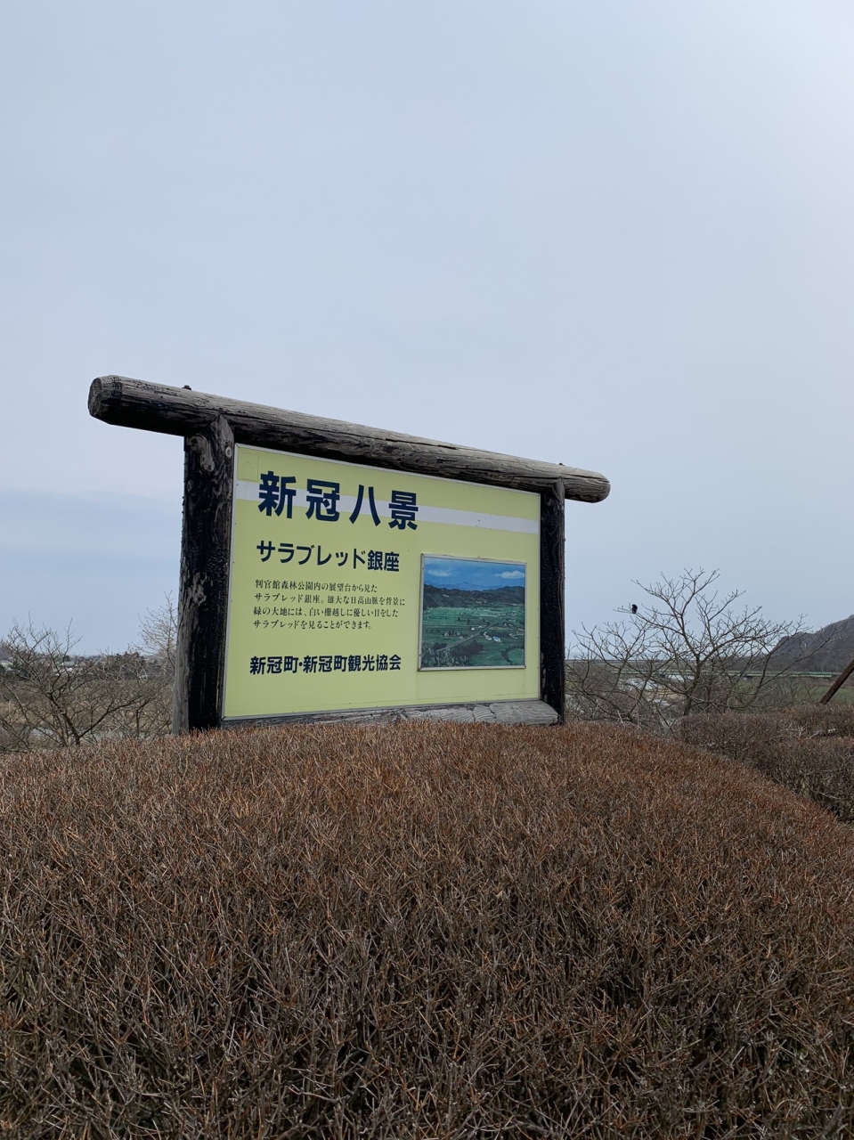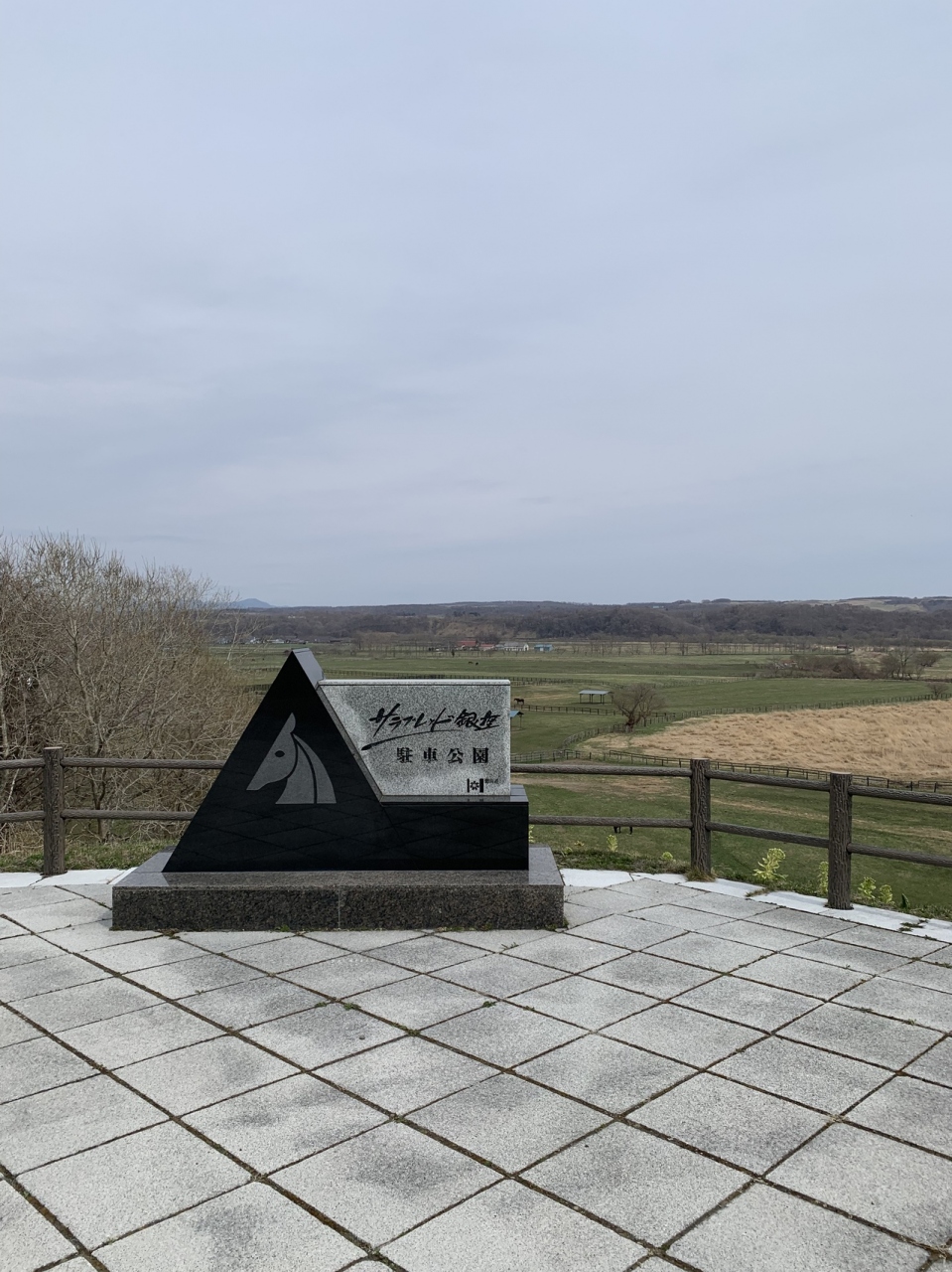 国道235号線から山間部に向かっての道の両側にたくさんの牧場があって、サラブレッドがいっぱいいます。入口付近に駐車公園があって車を停めることが出来ました。整備された公園です。そこから新冠泥火山が見えます。雄大な日高山脈を背景にたくさんの綺麗んサラブレッドを見ることできました。
