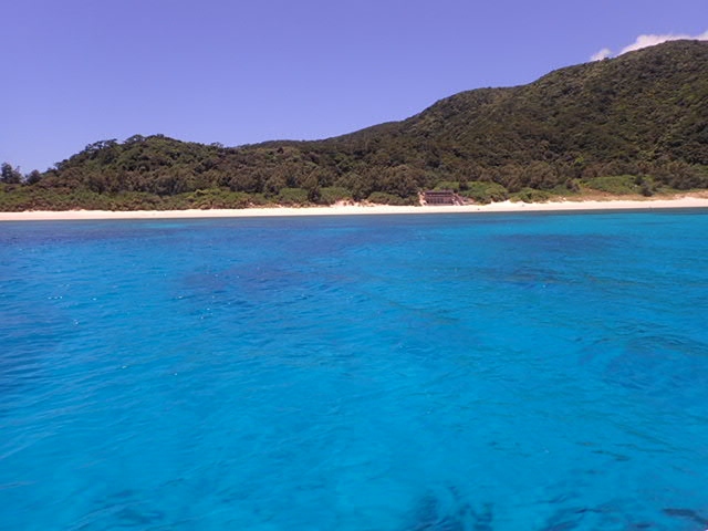 慶良間諸島の阿嘉島にあるビーチです。白い砂と海のブルーがきれいです。水中は砂地がメインンで、ところどころにサンゴの根があります。阿嘉島の港や宿が多いエリアからは少し距離があります。今回はダイビングのため船で行きました。