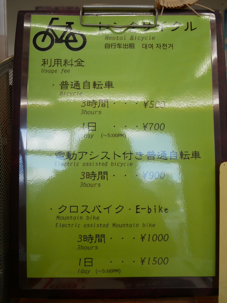 レンタサイクルは電動と普通自転車があり、申し込むとすぐに用意してくれます。