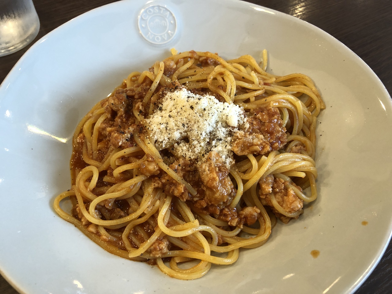 スマホから注文するシステムでした。日曜でしたがほぼ開店と同時くらいに行ったらガラガラでした。お冷の代わりにアイスティーが出てきました。豚挽肉のボロネーゼを注文。麺は生パスタのようにもちもちしていました。もう少しアルデンテだと尚良いです。