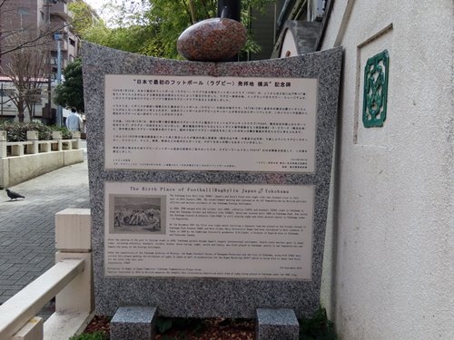 【「日本のフットボール(ラグビー)発祥の地 横浜」碑】1866年に横浜でフットボールクラブ発足
