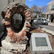 【「横浜の下水道の始まり」碑】中華街でも発見!印象深い煉瓦製、卵形下水道管